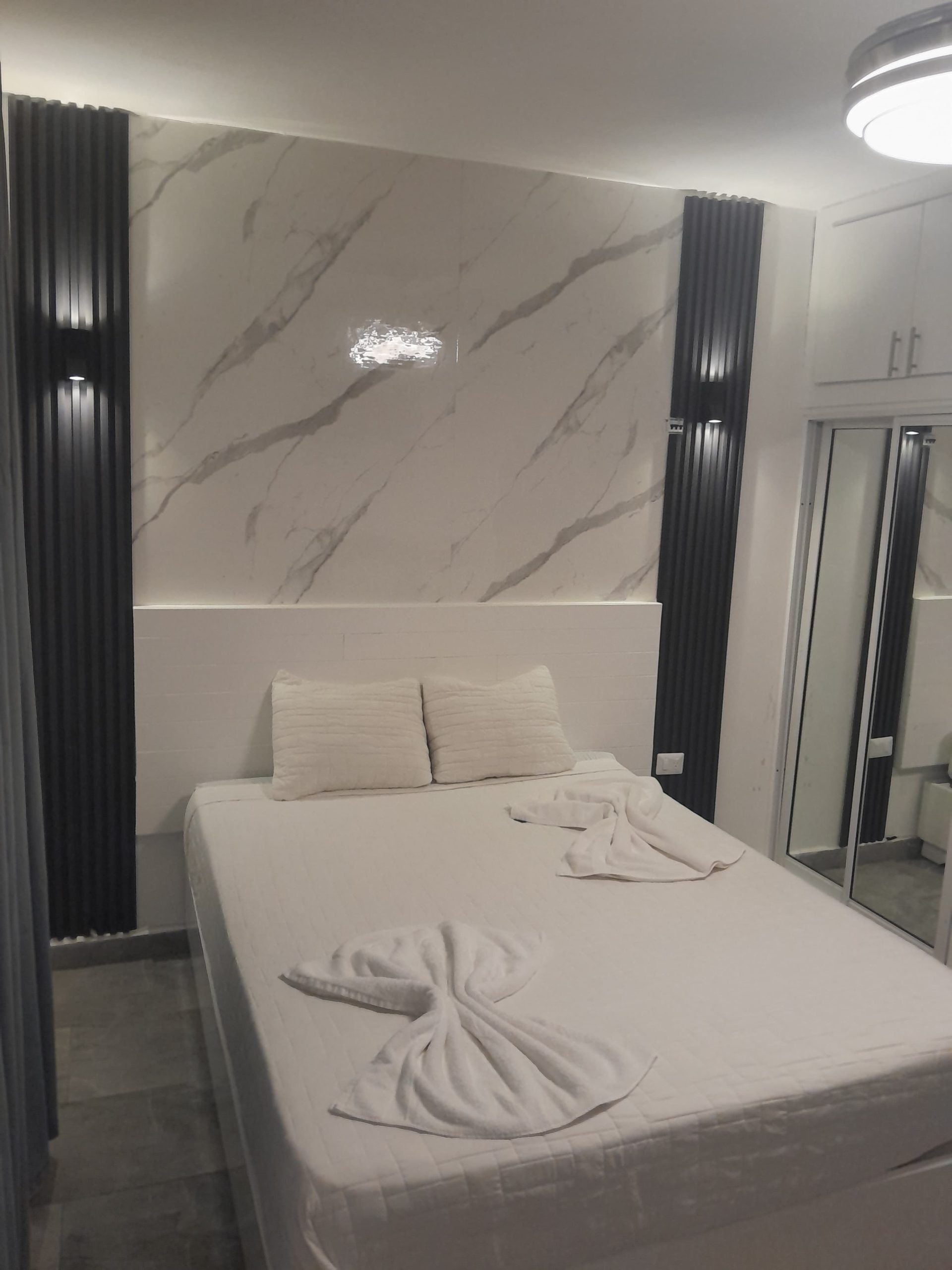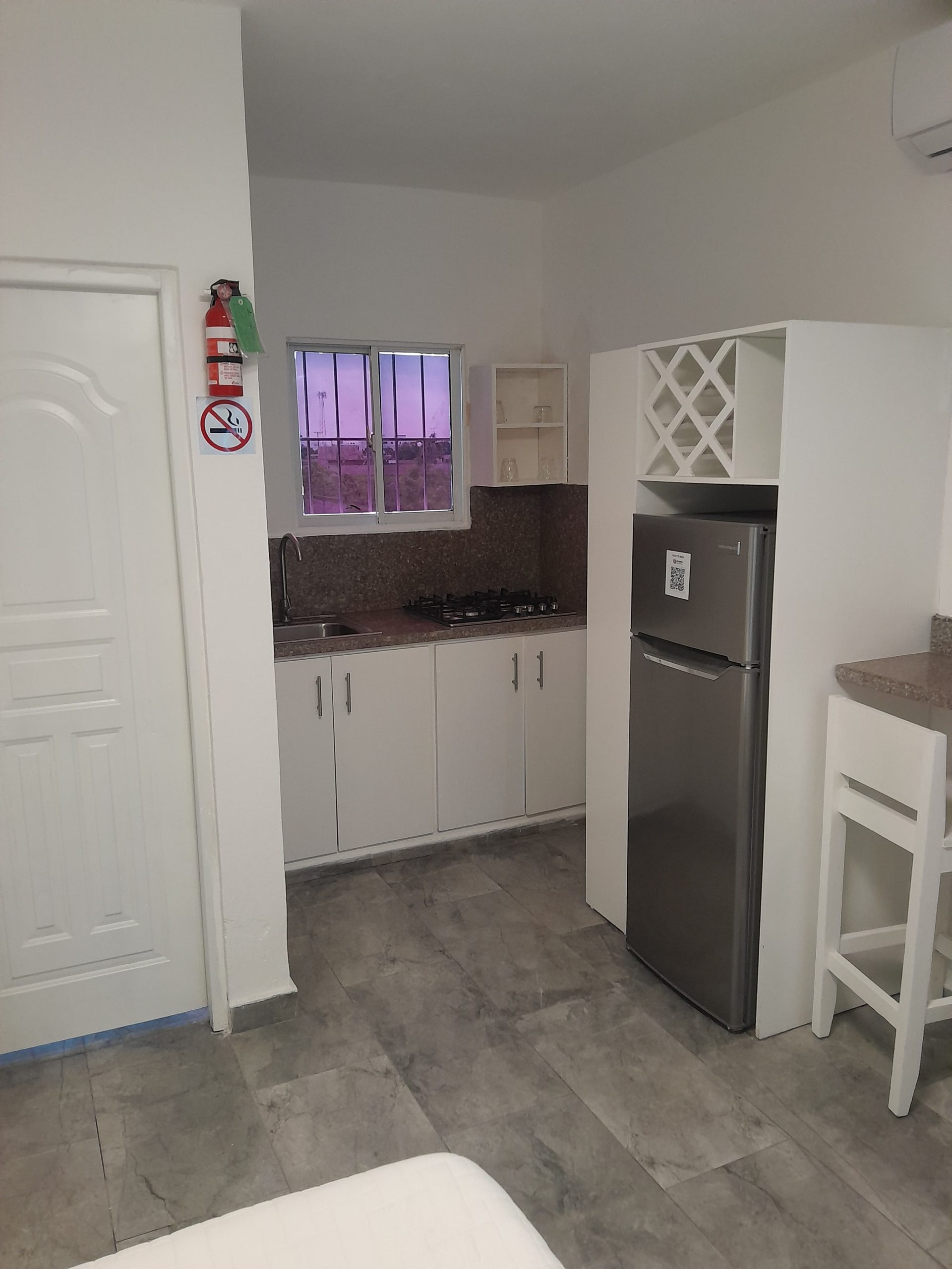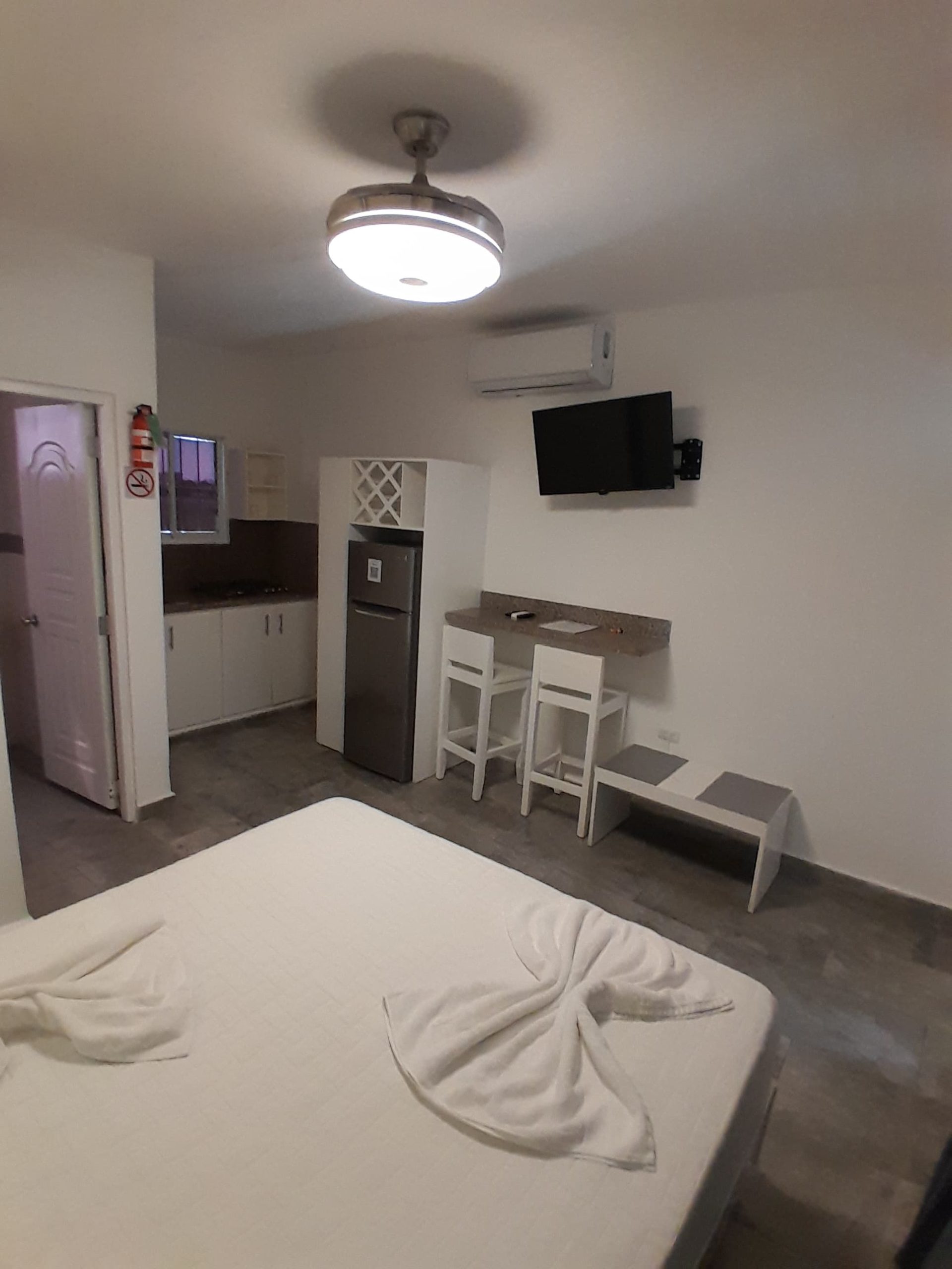Cuenta con cocina totalmente equipada con mesa de comedor, TV pantalla plana con cable, baño privado con ducha y articulos de aseo gratuitos.